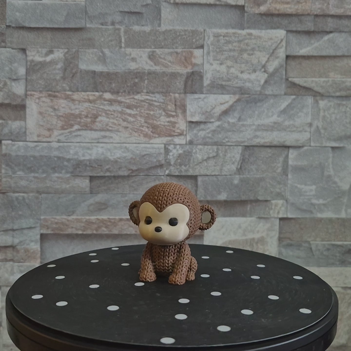 Un singe amusant en version tricot 3D, parfait pour une déco ludique et originale.